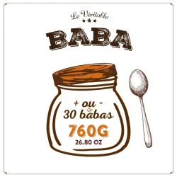 Ingrédients : Biscuit (farine de BLE, UFS, huile de tournesol, sucre, sel, levain), sirop à 12% volume (eau, rhum, sucre, arôme vanille, colorant : E150a).