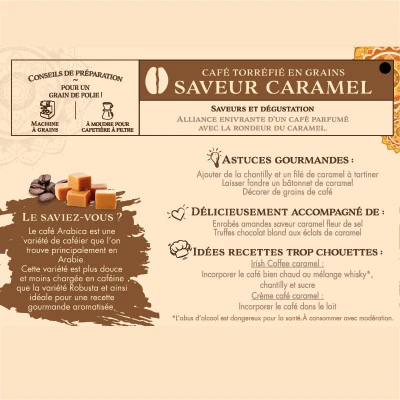 Ingrédients : Café 100% Arabica, arôme caramel 2%.