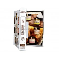 Pâte à tartiner lait noisette éclats de caramel au beurre salé : Sucre, pâte de NOISETTES 30%, graisses végétales (huiles : tournesol, grignon d’olives, carthame et beurre de cacao), LAIT écrémé en poudre 11%, caramel aromatique au BEURRE salé et à la CREME 5% (sucre, sirop de glucose, BEURRE salé, CREME), cacao maigre en poudre, émulsifiant : lécithine de SOJA.