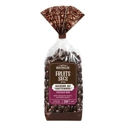 Raisins au Sauternes enrobés de Chocolat Noir… Réservé aux grands gourmands ! Retrouvez la puissance du chocolat noir et la douceur du raisin confit au Sauternes…