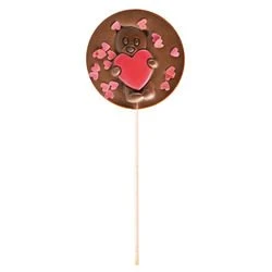 Déclarez votre amour avec gourmandise grâce à notre sucette en chocolat au lait, son ourson en guimauve et ses petits cœurs en sucre. Une déclaration tendre et passionnée !