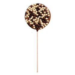 Fondez pour notre sucette au chocolat au lait et riz soufflé. Le lait croustillant, une gourmandise de votre enfance !