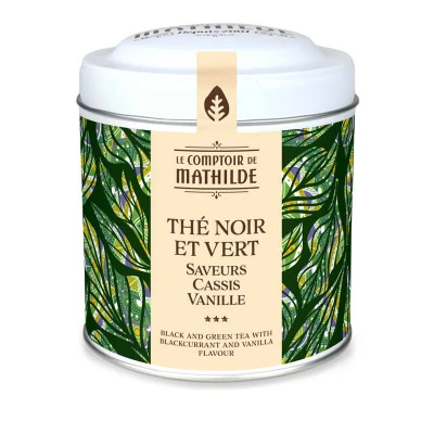 Thé noir et vert, aux notes boisées et herbacées qui se marient parfaitement avec les facettes aromatiques du cassis,