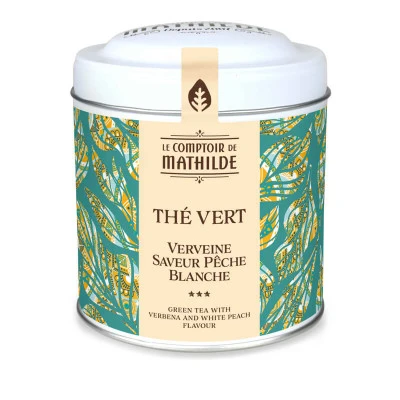 Thé vert aux notes fruitées et florales de la pêche blanche mises en valeur par la fraicheur de la verveine